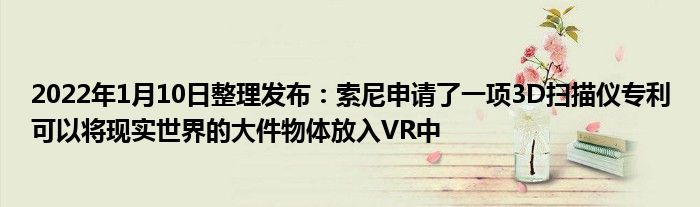 2022年1月10日整理发布:近日,索尼申请了一项3D扫描仪专利,可以将现实世界的大件物体放入VR中。