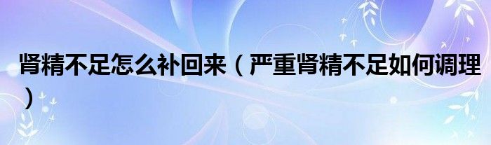 肾精不足怎么补回来(严重肾精不足如何调理)