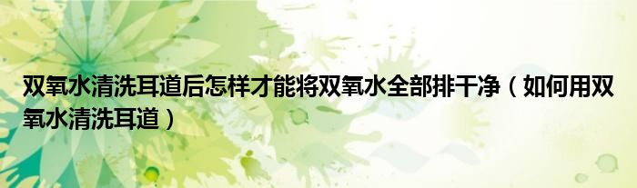 大家好,linda来为大家解答以上的问题。双氧水清洗耳道后怎样才能将双氧水全部排干净,如何用双氧水清洗耳道很多人还不知道,现在让我们一起来看看吧!