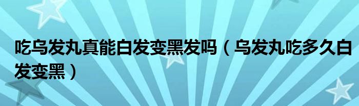 大家好,linda来为大家解答以上的问题。吃乌发丸真能白发变黑发吗,乌发丸吃多久白发变黑很多人还不知道,现在让我们一起来看看吧!