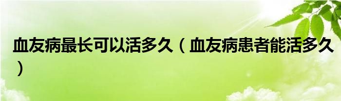 大家好,linda来为大家解答以上的问题。血友病最长可以活多久,血友病患者能活多久很多人还不知道,现在让我们一起来看看吧!
