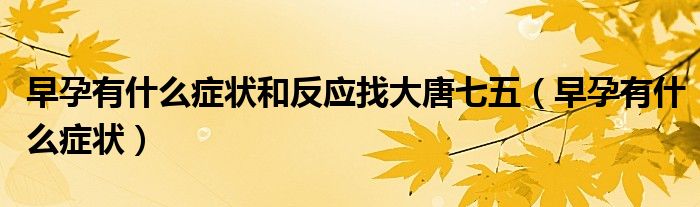 大家好,linda来为大家解答以上的问题。早孕有什么症状和反应找大唐七五,早孕有什么症状很多人还不知道,现在让我们一起来看看吧!
