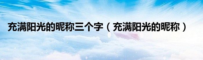 大家好,小晋来为大家解答以下问题,关于充满阳光的昵称三个字,充满阳光的昵称很多人还不知道,今天让我们一起来看看吧!