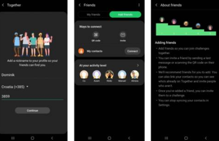 让我们排除非Galaxy Watch 3功能。现在,三星健康将与您电话或帐户中的联系人集成。这样,您可以更轻松地邀请您想与之共事的朋友。您可以直接从“在一起”选项卡中添加朋友,如果他们接受,则应该一起开始活动,比较分数并添加挑战。并非每个人都想独自锻炼,因此这是锻炼锻炼伙伴的简便方法。
