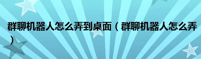 大家好,小晋来为大家解答以下问题,关于群聊机器人怎么弄到桌面,群聊机器人怎么弄很多人还不知道,今天让我们一起来看看吧!