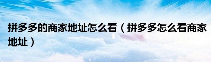 大家好,小晋来为大家解答以下问题,关于拼多多的商家地址怎么看,拼多多怎么看商家地址很多人还不知道,今天让我们一起来看看吧!
