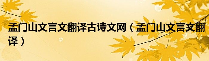 大家好,小晋来为大家解答以下问题,关于孟门山文言文翻译古诗文网,孟门山文言文翻译很多人还不知道,今天让我们一起来看看吧!