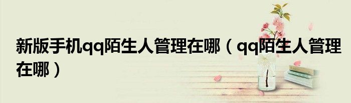 新版手机qq陌生人管理在哪(qq陌生人管理在哪)