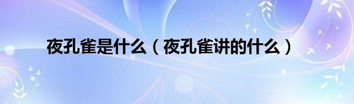 大家好,小晋来为大家解答以下问题,关于夜孔雀是什么,夜孔雀讲的什么很多人还不知道,今天让我们一起来看看吧!