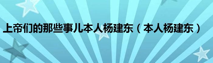 上帝们的那些事儿本人杨建东(本人杨建东)