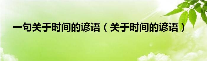 大家好,小晋来为大家解答以下问题,关于一句关于时间的谚语,关于时间的谚语很多人还不知道,今天让我们一起来看看吧!