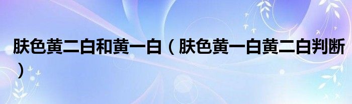 肤色黄二白和黄一白(肤色黄一白黄二白判断)