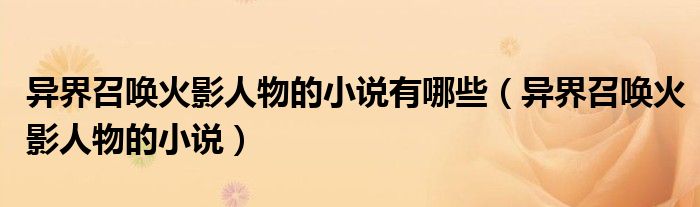异界召唤火影人物的小说有哪些(异界召唤火影人物的小说)
