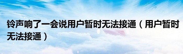 大家好,小晋来为大家解答以下问题,关于铃声响了一会说用户暂时无法接通,用户暂时无法接通很多人还不知道,今天让我们一起来看看吧!
