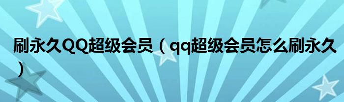 刷永久QQ超级会员(qq超级会员怎么刷永久)