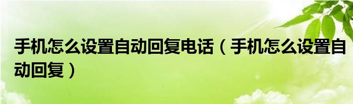 大家好,小晋来为大家解答以下问题,关于手机怎么设置自动回复电话,手机怎么设置自动回复很多人还不知道,今天让我们一起来看看吧!