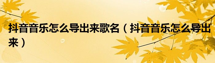 大家好,小晋来为大家解答以下问题,关于抖音音乐怎么导出来歌名,抖音音乐怎么导出来很多人还不知道,今天让我们一起来看看吧!