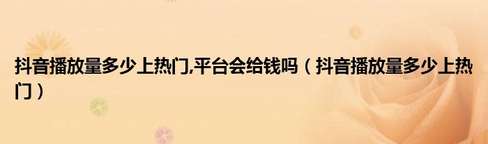 大家好,小晋来为大家解答以下问题,关于抖音播放量多少上热门,平台会给钱吗,抖音播放量多少上热门很多人还不知道,今天让我们一起来看看吧!