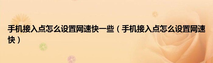 手机接入点怎么设置网速快一些(手机接入点怎么设置网速快)