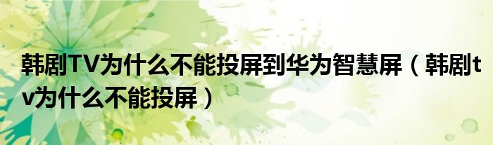 韩剧TV为什么不能投屏到华为智慧屏(韩剧tv为什么不能投屏)