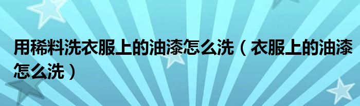 大家好,小晋来为大家解答以下问题,关于用稀料洗衣服上的油漆怎么洗,衣服上的油漆怎么洗很多人还不知道,今天让我们一起来看看吧!