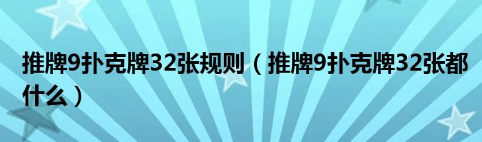 大家好,小晋来为大家解答以下问题,关于推牌9扑克牌32张规则,推牌9扑克牌32张都什么很多人还不知道,今天让我们一起来看看吧!