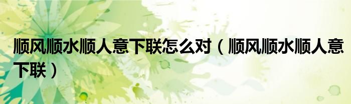 大家好,小晋来为大家解答以下问题,关于顺风顺水顺人意下联怎么对,顺风顺水顺人意下联很多人还不知道,今天让我们一起来看看吧!