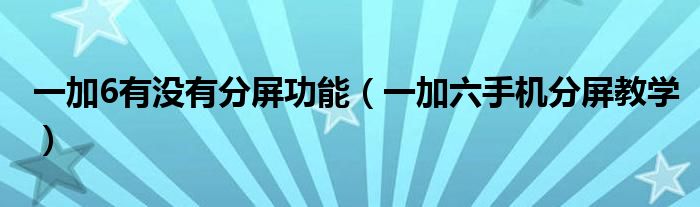 大家好,小晋来为大家解答以下问题,关于一加6有没有分屏功能,一加六手机分屏教学很多人还不知道,今天让我们一起来看看吧!