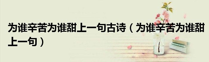 大家好,小晋来为大家解答以下问题,关于为谁辛苦为谁甜上一句古诗,为谁辛苦为谁甜上一句很多人还不知道,今天让我们一起来看看吧!