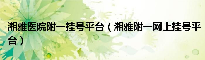 大家好,小晋来为大家解答以下问题,关于湘雅医院附一挂号平台,湘雅附一网上挂号平台很多人还不知道,今天让我们一起来看看吧!
