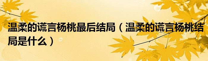 大家好,小晋来为大家解答以下问题,关于温柔的谎言杨桃最后结局,温柔的谎言杨桃结局是什么很多人还不知道,今天让我们一起来看看吧!