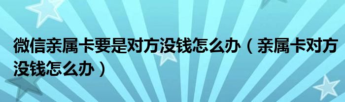 大家好,小晋来为大家解答以下问题,关于微信亲属卡要是对方没钱怎么办,亲属卡对方没钱怎么办很多人还不知道,今天让我们一起来看看吧!