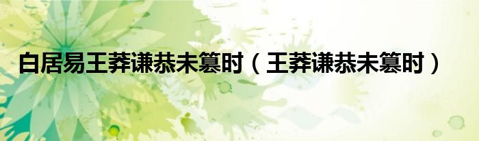 大家好,小晋来为大家解答以下问题,关于白居易王莽谦恭未篡时,王莽谦恭未篡时很多人还不知道,今天让我们一起来看看吧!