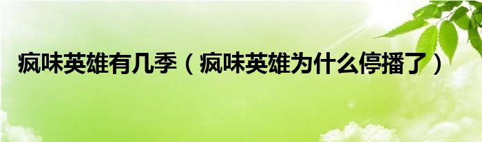 大家好,小晋来为大家解答以下问题,关于疯味英雄有几季,疯味英雄为什么停播了很多人还不知道,今天让我们一起来看看吧!