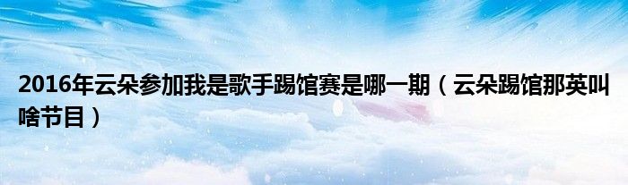 大家好,小晋来为大家解答以下问题,关于2016年云朵参加我是歌手踢馆赛是哪一期,云朵踢馆那英叫啥节目很多人还不知道,今天让我们一起来看看吧!