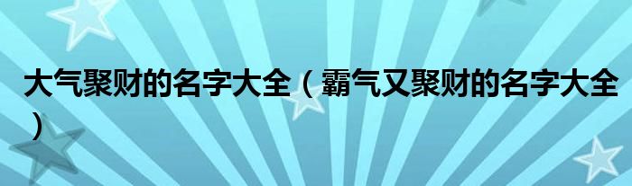 大家好,小晋来为大家解答以下问题,关于大气聚财的名字大全,霸气又聚财的名字大全很多人还不知道,今天让我们一起来看看吧!