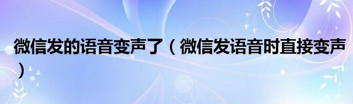 微信发的语音变声了(微信发语音时直接变声)