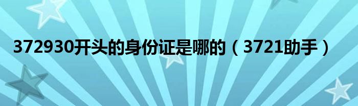 372930开头的身份证是哪的,3721助手很多人还不知道,乐乐来为大家解答以上问题,现在让我们一起来看看吧!
