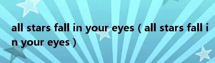 all stars fall in your eyes,all stars fall in your eyes很多人还不知道,乐乐来为大家解答以上问题,现在让我们一起来看看吧!