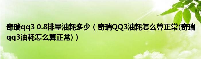 大家好,小常来为大家解答以上问题。奇瑞qq3 0.8排量油耗多少,奇瑞QQ3油耗怎么算正常(奇瑞qq3油耗怎么算正常)很多人还不知道,现在让我们一起来看看吧!