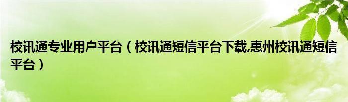 大家好,小常来为大家解答以上问题。校讯通专业用户平台,校讯通短信平台下载,惠州校讯通短信平台很多人还不知道,现在让我们一起来看看吧!