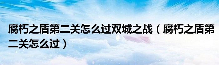 大家好,来宝来为大家解答以下问题,腐朽之盾第二关怎么过双城之战,腐朽之盾第二关怎么过很多人还不知道,今天让我们一起来看看吧!