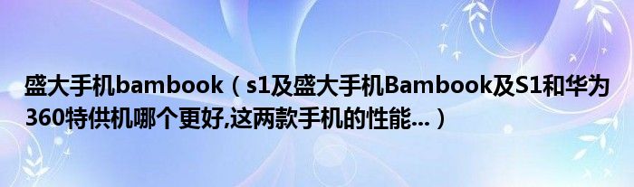 大家好,小常来为大家解答以上问题。盛大手机bambook,s1及盛大手机Bambook及S1和华为360特供机哪个更好,这两款手机的性能...很多人还不知道,现在让我们一起来看看吧!