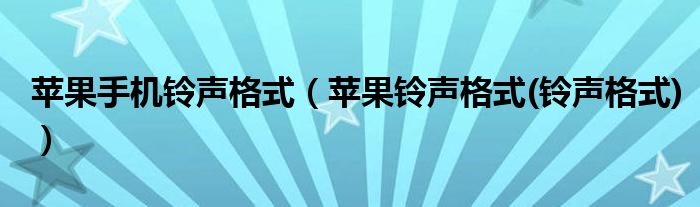 1.m4r格式。设置铃声步骤:打开“itunes”,选择菜单栏的“文件”-“将文件添加到资料库”选择要做铃声的歌曲,单击“打开”歌曲会出现在“资料库”的“音乐”里右击歌曲,选择“显示简介”选择“选项”填上“起始时间”和“停止时间”(在40秒以内),-“确定” PS:iphone铃声要40秒内的再右击歌曲,选择“创建ACC版本”出现同样文件名,但时长在40秒以内的文件右击新创建的歌曲,选择“在windows资源管理器中显示”,把“m4a”格式改成“m4r”,在跳出的窗口选择“是”即可检查:在“itunes”菜单栏“编辑”里找到“偏好设置”打开在“常用”-“源”里的“铃声”前面打钩,然后“确定”。