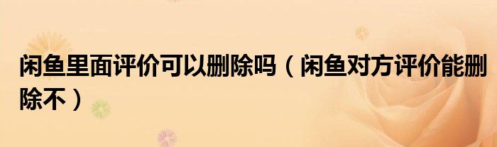 大家好,跳跳为你解答以上问题。闲鱼里面评价可以删除吗,闲鱼对方评价能删除不这个问题很多人还不知道,现在让我们一起来看看吧!