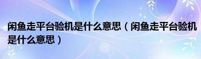闲鱼走平台验机是什么意思(闲鱼走平台验机是什么意思)