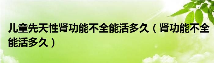 儿童先天性肾功能不全能活多久(肾功能不全能活多久)
