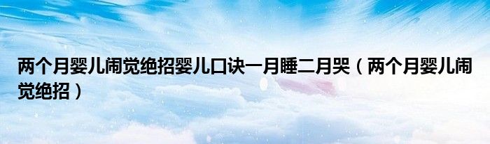 大家好,linda来为大家解答以上的问题。两个月婴儿闹觉绝招婴儿口诀一月睡二月哭,两个月婴儿闹觉绝招很多人还不知道,现在让我们一起来看看吧!