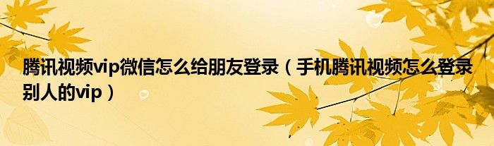 大家好,跳跳为你解答以上问题。腾讯视频vip微信怎么给朋友登录,手机腾讯视频怎么登录别人的vip这个问题很多人还不知道,现在让我们一起来看看吧!