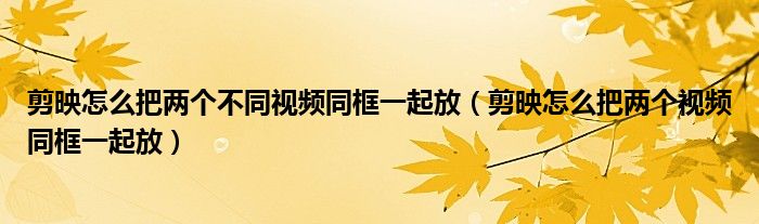 大家好,跳跳为你解答以上问题。剪映怎么把两个不同视频同框一起放,剪映怎么把两个视频同框一起放这个问题很多人还不知道,现在让我们一起来看看吧!